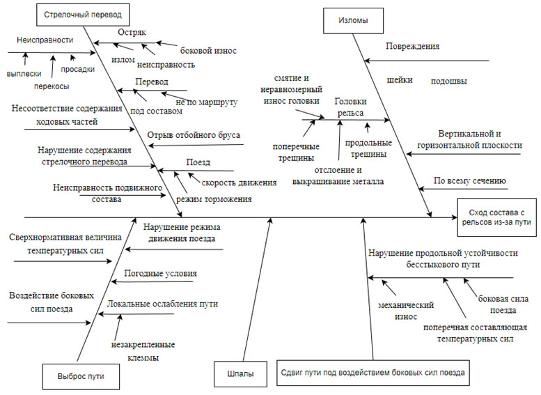 Рис. 2. Диаграмма Исикавы «Сход состава с рельсов из-за пути»