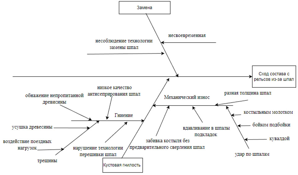 Рис. 3. Диаграмма Исикавы «Сход состава с рельсов из-за шпал»