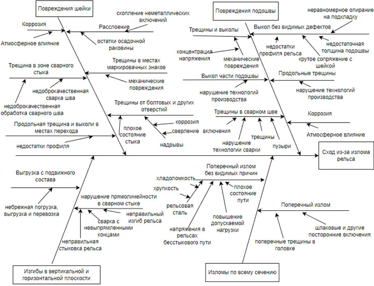 Рис. 4. Диаграмма Исикавы «Сход из-за излома рельса»