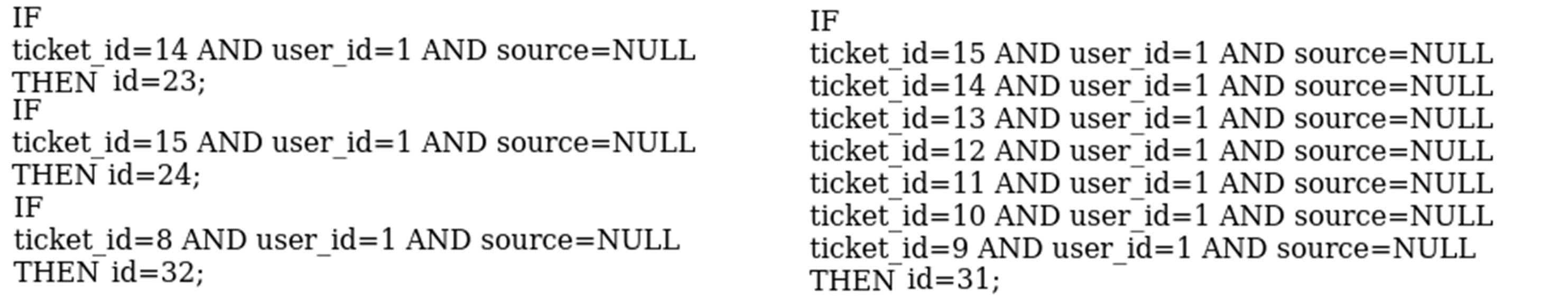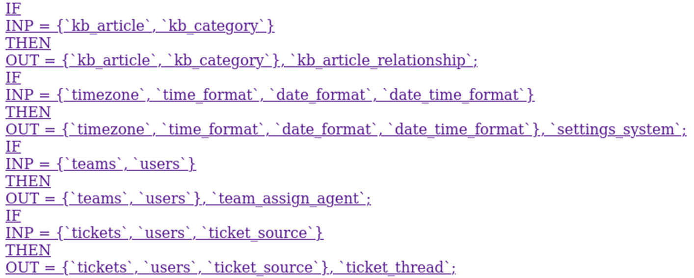 Рис. 7. Автоматический вывод для отображения базы правил второго уровня информационной системы faveo для ключевого процесса ticket_thread