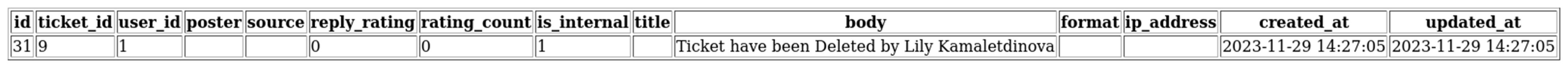 Таким образом, при заданных входных данных формируется результат, который отражает состояние ключевого процесса информационной системы faveo service desk. Этот вывод подтверждает целесообразность применения предложенного подхода, так как сформированный результат отражает реальные данные при работе с системой заявок faveo service desk, и получение результата не зависит от запуска самой интегрируемой информационной системы, что является преимуществом при отображении данных и параллельной работе интегрируемой информационной системы с комплексом PLM.