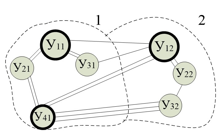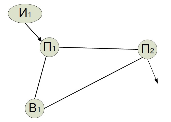 Обозначение в каждом субъекте основных узлов ветвления. Выделяем на схеме узлы, из которых потоки идут в трех направлениях и более (количество смежных узлов≥3) |