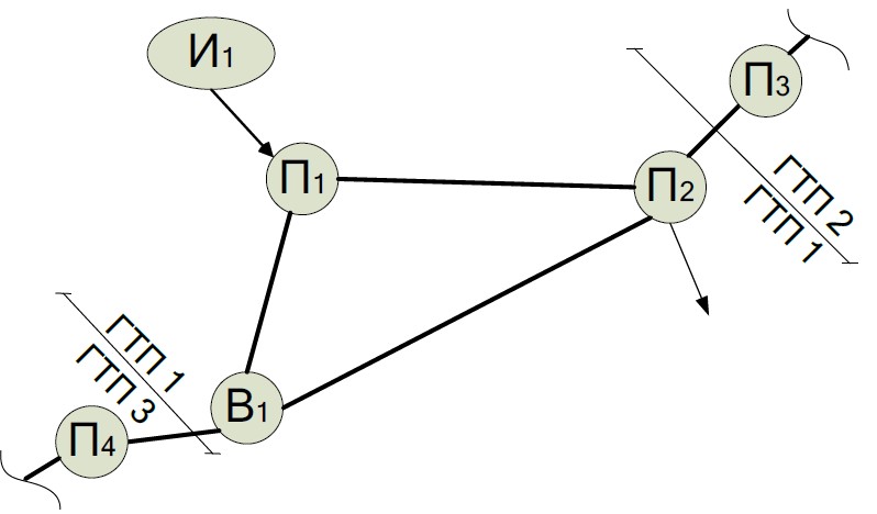 Построение расчетной схемы газоснабжающей системы происходит путем укрупнения подробной схемы, при этом должны сохраняться все необходимые свойства первичной схемы.