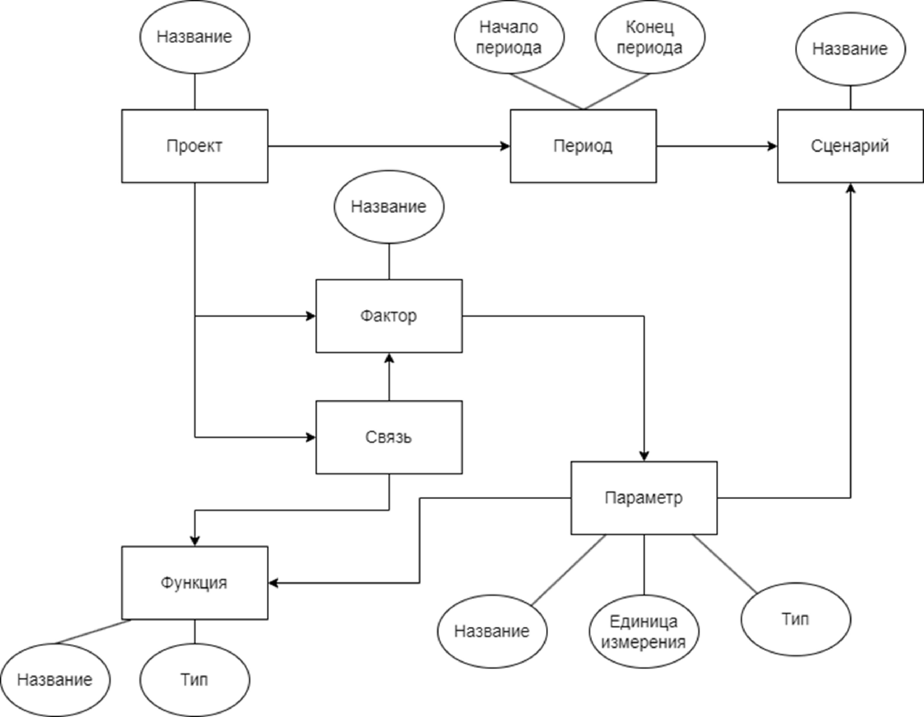 - Проект – содержит все необходимые данные для отображения и запуска имитационного расчета на основе данных динамической когнитивной карты;