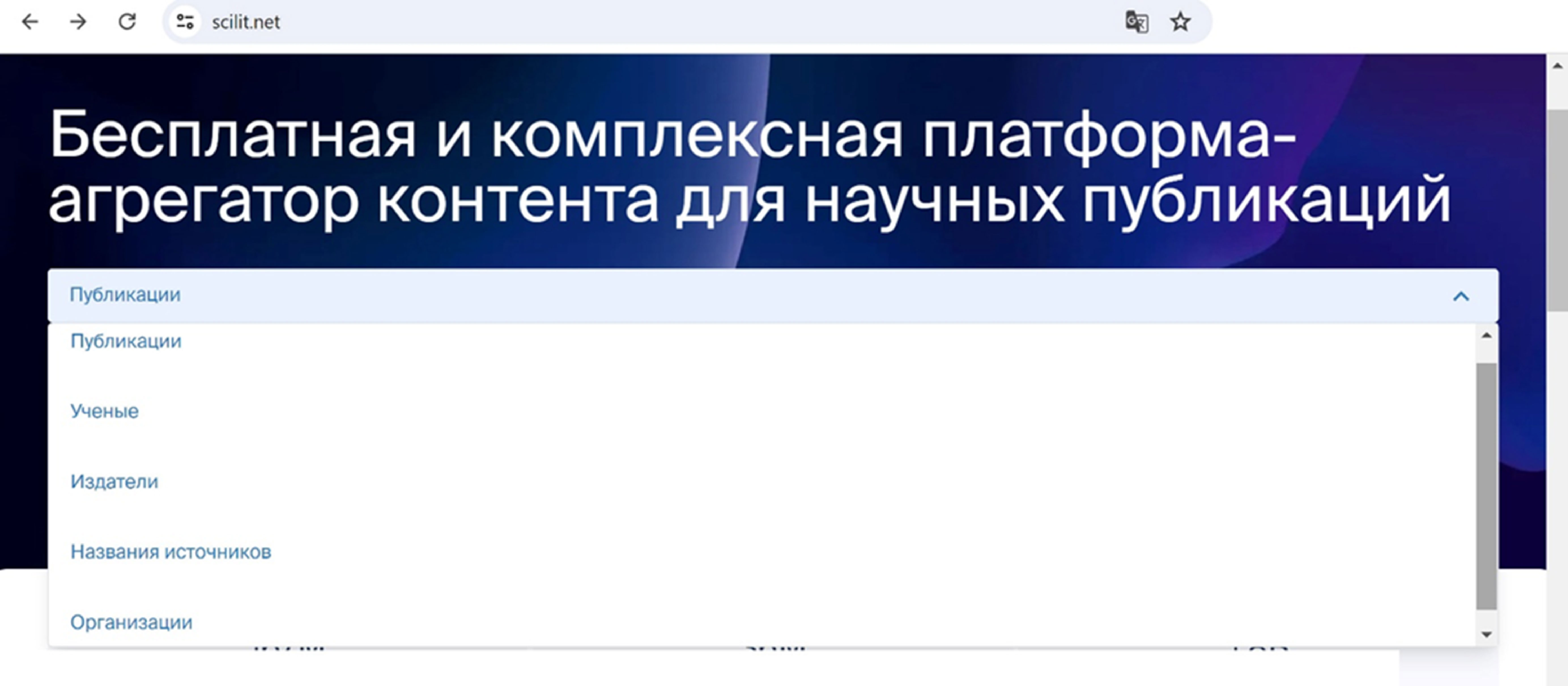 Рис. 1. Главное меню Scilit