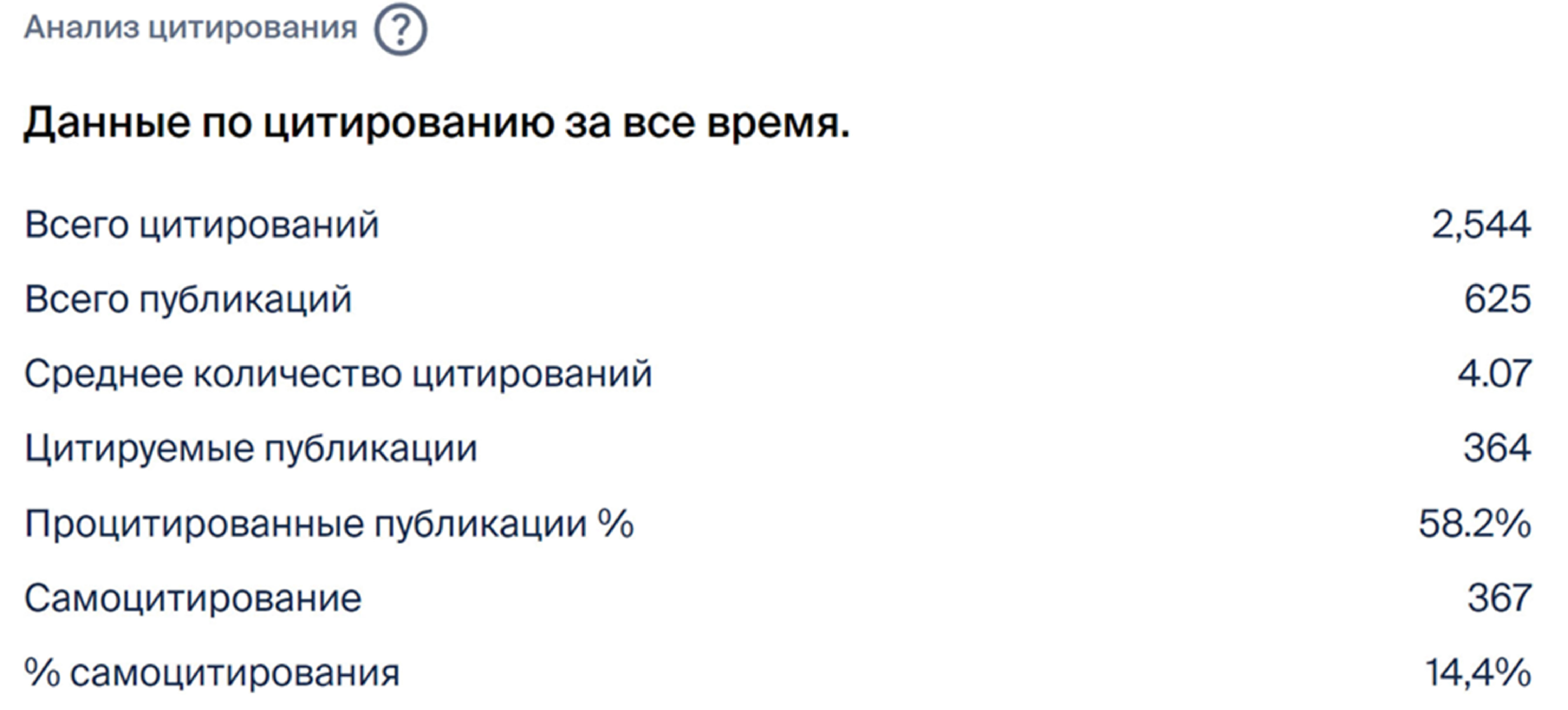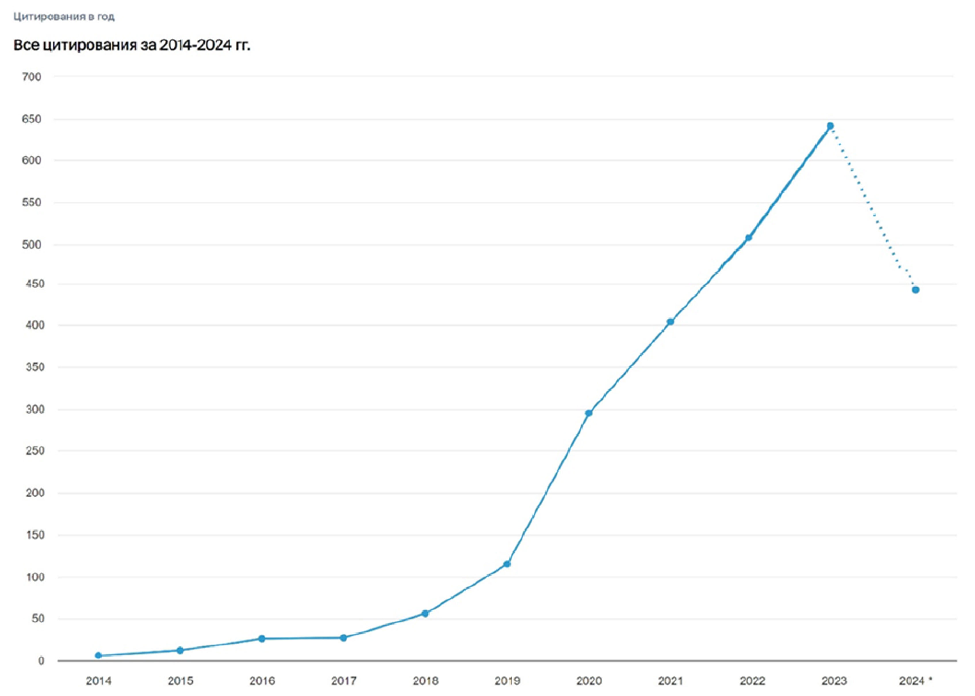 Также следует обратить внимание на статистику по цитированию (рис. 7), которую можно получить за любой диапазон лет с начала наполнения базы данных Scilit (2014 год).