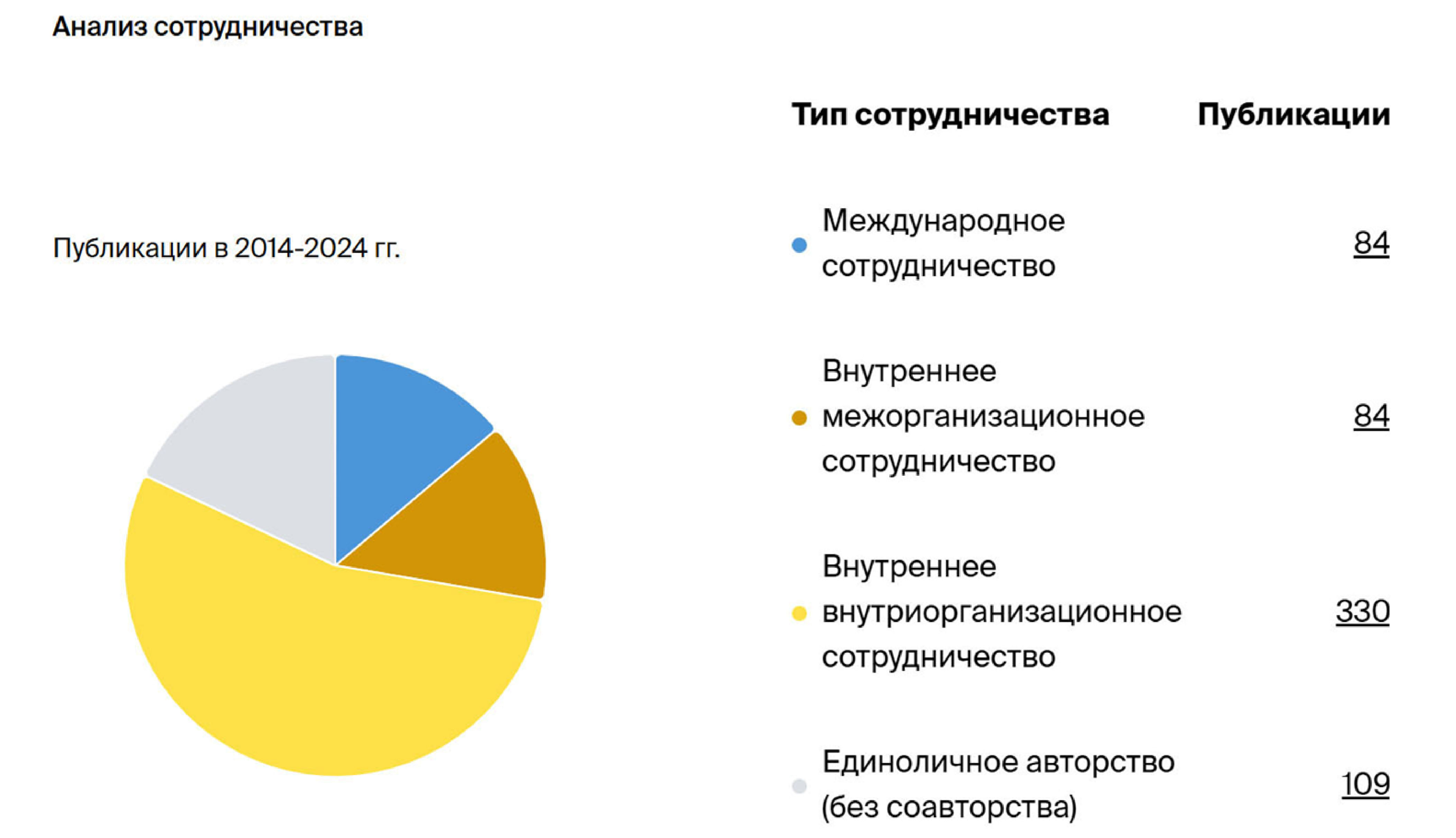 Рис. 9. Данные по научным публикациям, подготовленным в соавторстве с сотрудниками других организаций