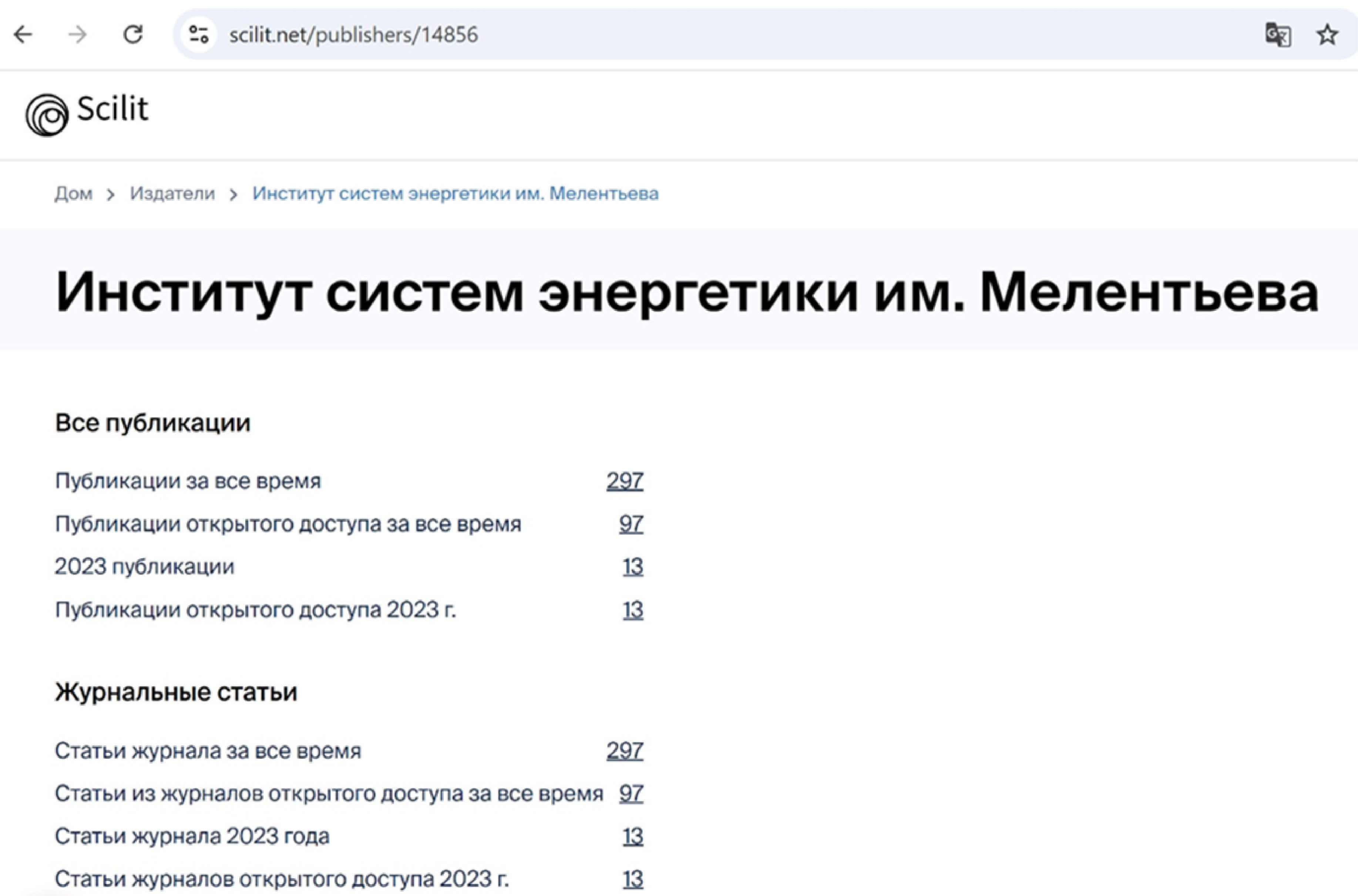 The paper examines issues related to the presentation of information on publications of scientific employees of ISEM SB RAS, as well as on scientific publications of the Institute in information and analytical materials of the Scilit system. Specific examples show the advantage of complete and correct setting of metadata for scientific publications, as well as the problems that arise when handling bibliographic information carelessly.