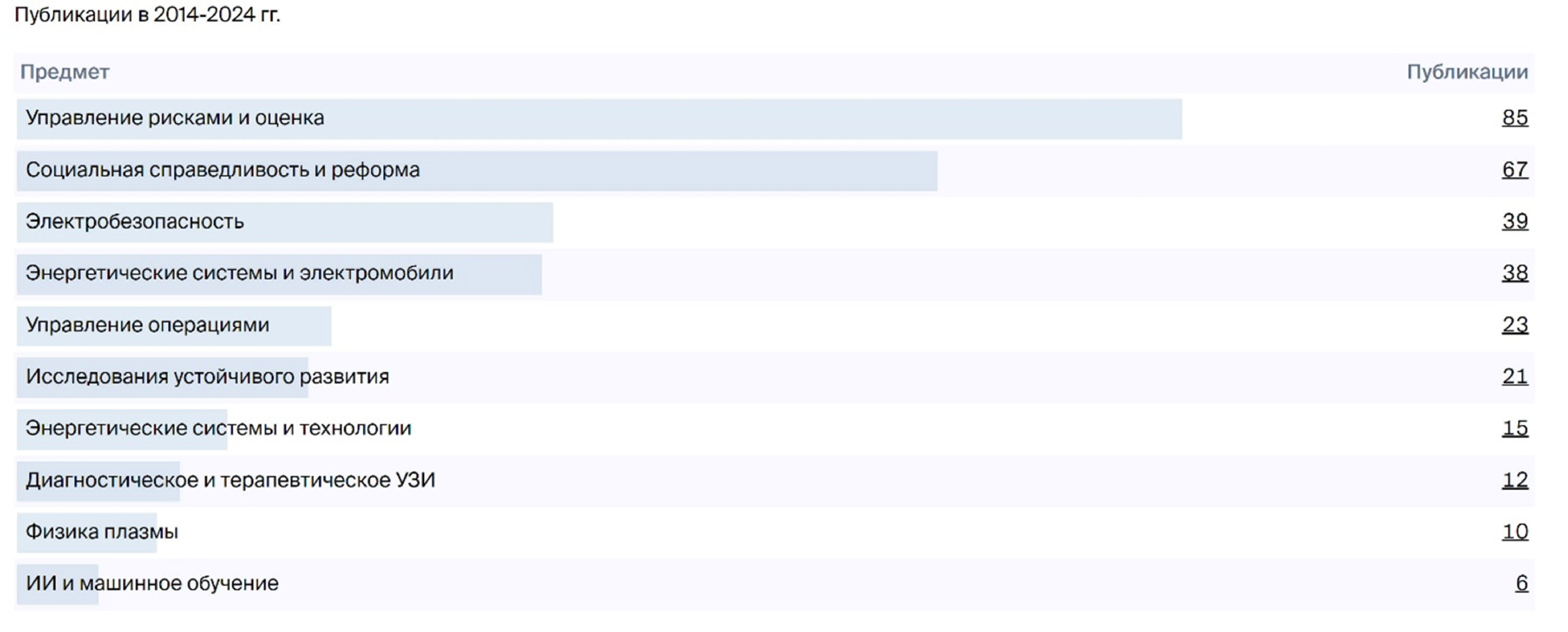На основе модели машинного обучения Scilit автоматически классифицирует публикации по различным темам. Модель классификации тем была обучена только на англоязычных публикациях и может привести к «слабым» результатам для публикаций на других языках (если тематическое направление вообще можно определить). Т.е. система сама, возможно по названиям статей или аннотациям, построила таблицу тематических направлений.