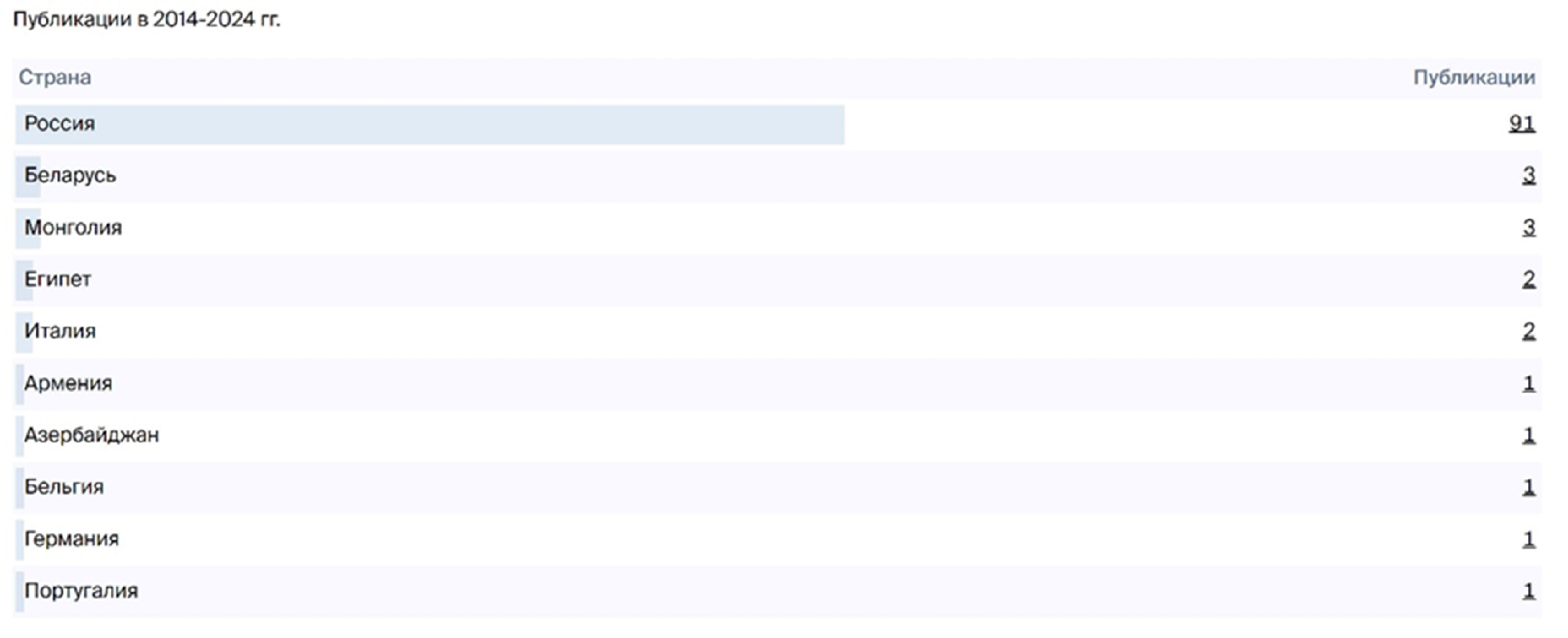 В качестве примера рассмотрим список публикаций монгольских коллег, «кликнув» соответствующее поле в столбце «Публикации»: