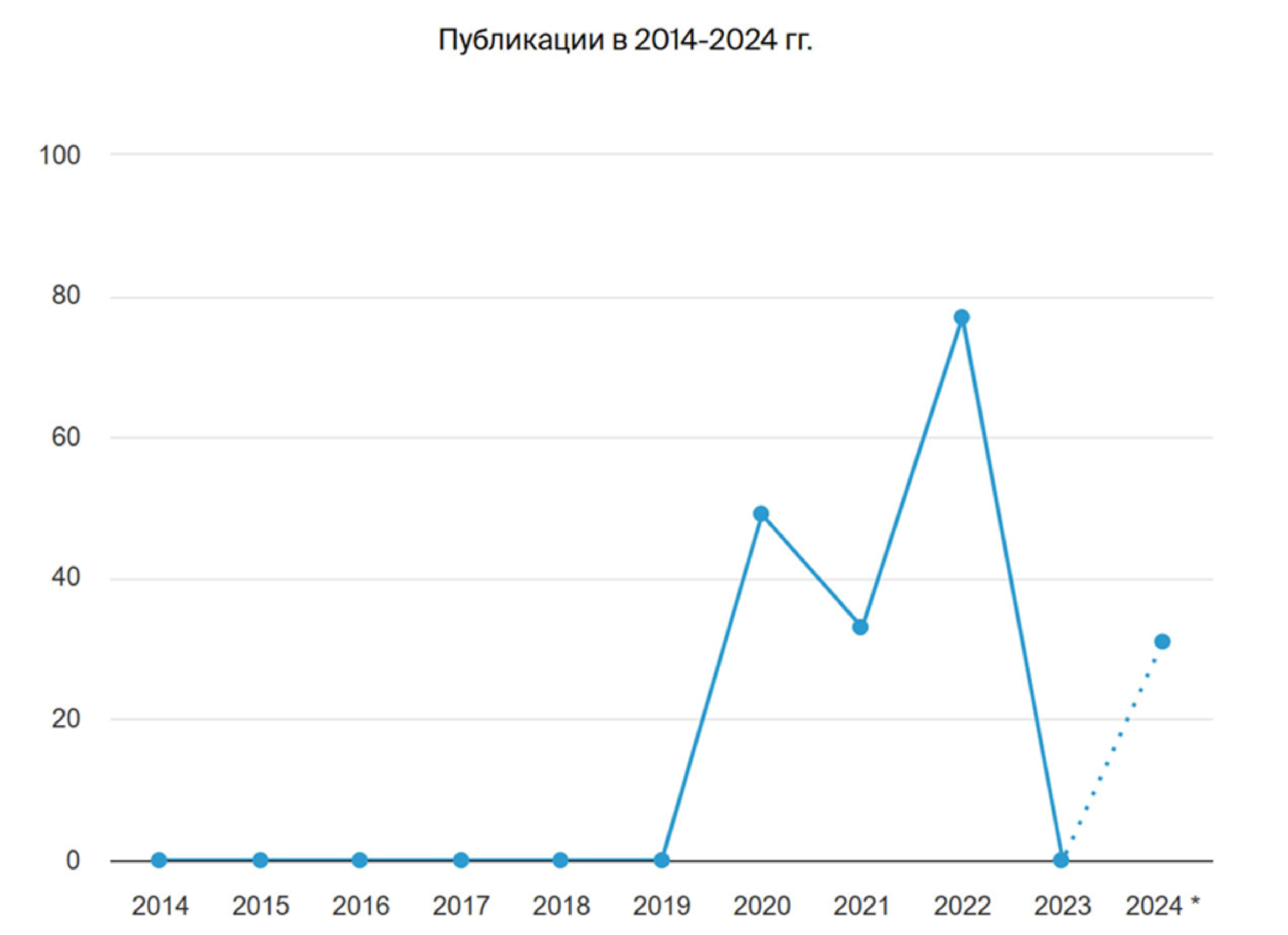 Резкое падение на графике в районе 2023 г. связано с тем, что или DOI опубликованным статьям не присваивались, или метаданные в Crossref не пересылались. Это можно увидеть, пролистнув аналитические таблицы и графики Scilit до раздела «Последние публикации». Увидим разрыв между № 4 (24) (11 января 2022 г.) и № 2 (34) (16 июля 2024 г.).