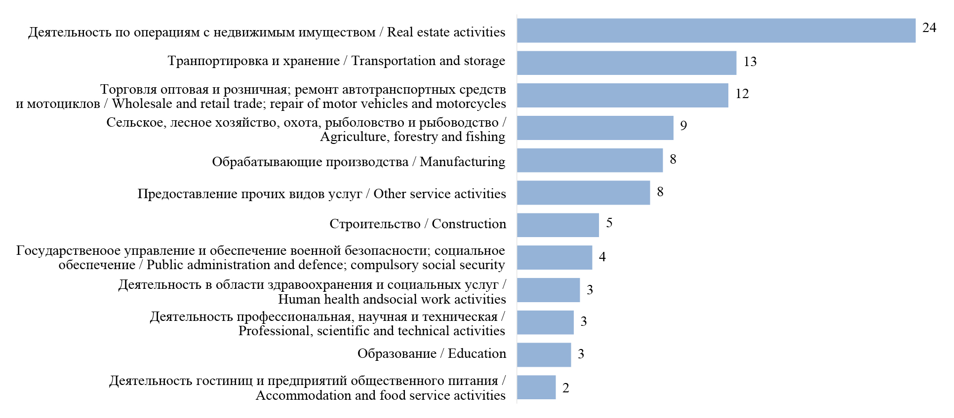 Fig. 1. Structure of the gross regional product in Krasnodar Territory by economic sector (in current basic prices), %