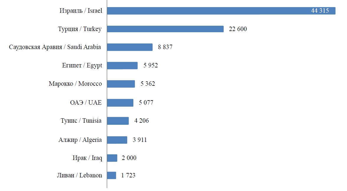 | Саудовская Аравия / Saudi Arabia | 835 | 0,5 | 2 819 | 62 768 | 23 |