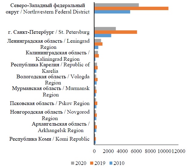 в Северо-Западном федеральном округе за 2010–2020 гг., тыс. ед.
