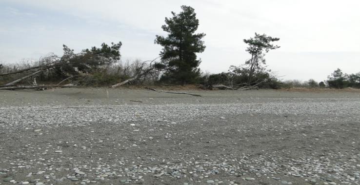 Fig. 3. The washout and fall of pine trees from the north side of the investigated shore section