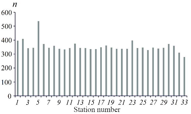 On average, 360 water samples were taken and analyzed for nutrient content at each station in 1991–2020 (Fig. 3). 90 analyzes of each ingredient were performed, i.e., 45 samples from the surface and bottom layers of water. This is sufficient for an objective statistical assessment [18].