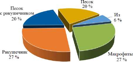 Рис. 3. Встречаемость Schistomeringos rudolphii на различных грунтах