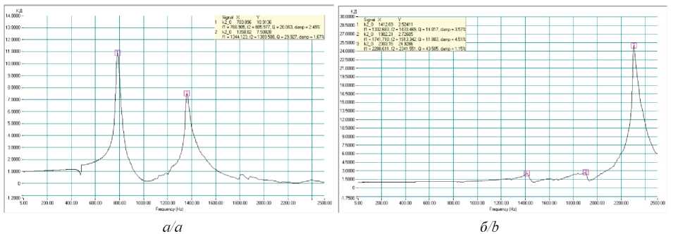Рис. 5. АЧХ макета № 2 (а) по направлению X(Y), (б) по направлению Z