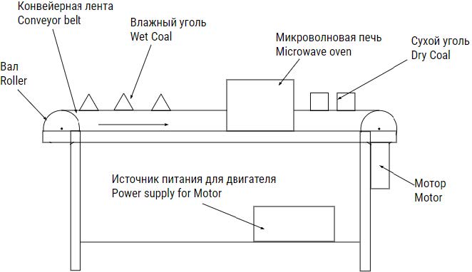 Среди современных работ можно выделить исследование характеристик сушки угля с помощью продувки котла в роторной сушилке угля [15]. Схема используемой роторной сушилки в данной работе представлен на рис. 2.