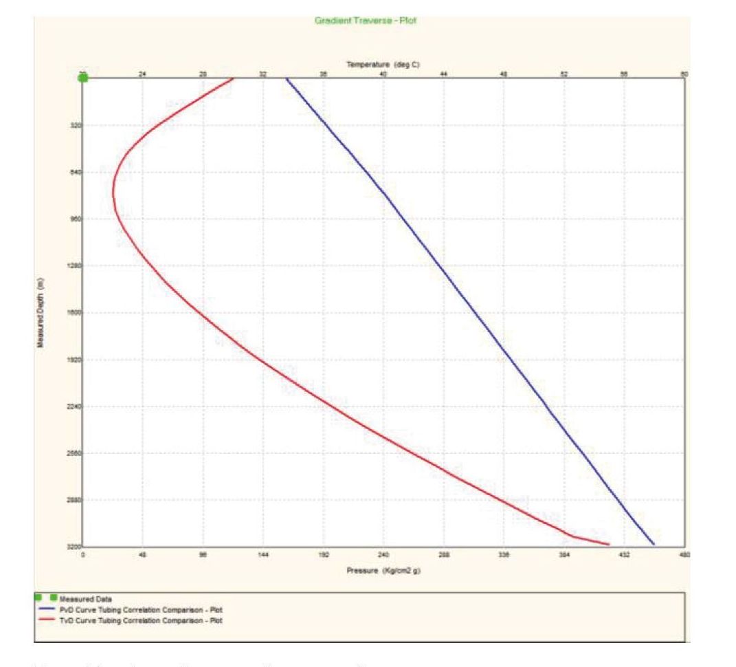 Для настройки вертикального лифта следует зайти в меню «Correlation Comparison» в секции «VLP/IPR Matching». На вкладке «Correlation Comparison» выполняется расчёт и построение градиента давления и температуры в скважине для данных на дату актуализации.