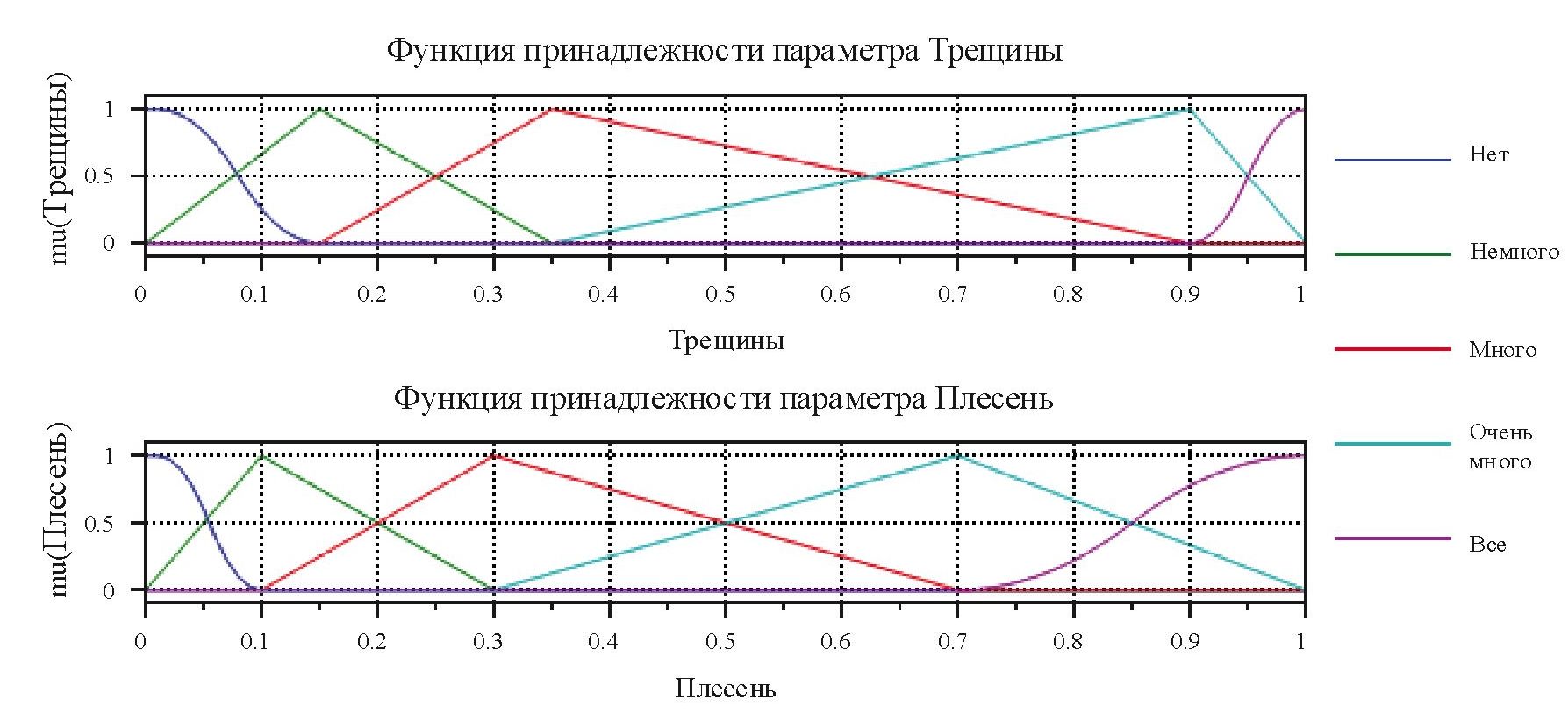 Функции принадлежности параметра Трещины Membership functions of parameter Cracks | Нет/No | 1 | 1 | 1 | 1 | 1 | 0 | 0 |
