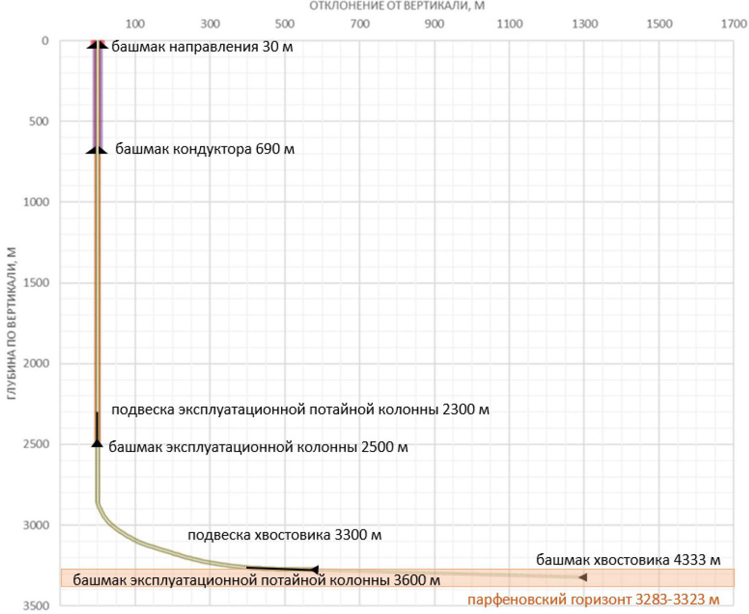 Рис. 1. Типовые профиль и конструкция скважины [составлено авторами]