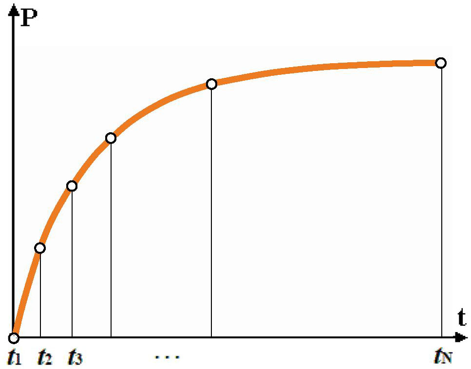 Использование зависимости Розина–Раммлера возможно для данных, подготовленных методом непрерывного взвешивания седиментационного осадка. Целью является получение кривых распределения, анализ которых позволяет установить фракционный состав системы. В этом методе площадка весов находится в жидкости на заданной глубине. При этом взаимного влияния частиц и влияния стенок нет. Частицы сферические, одинаковой плотности. Их постоянная скорость определяется из закона Стокса и зависит от диаметра частицы, её плотности, вязкости и плотности жидкости [10, 11]. В процессе эксперимента идёт регистрация интегрального веса осадка через определённые промежутки времени. Полученная кривая осаждения аппроксимируется зависимостью Розина–Раммлера, по которой определяются интегральная и дифференциальная кривые по размерам частиц.