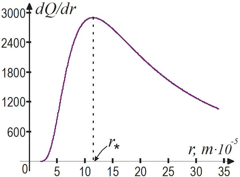 Радиус, которому соответствует максимальная доля частиц эксперимента, определяем по формуле (47), он равен r*=1.14·104.