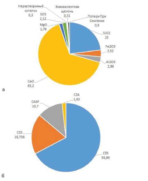 Рис. 1. Состав используемого тампонажного цемента класса G: а) химический; б) физический