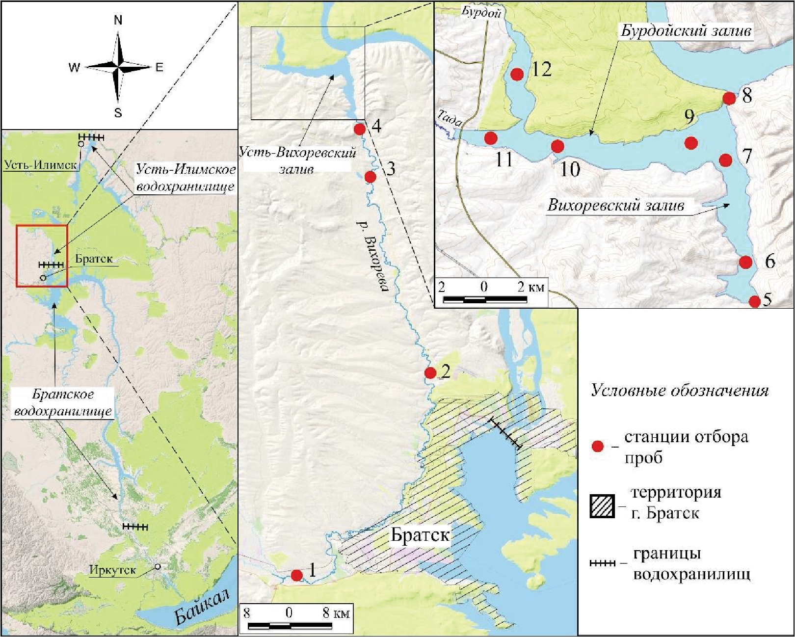 Объекты: воды р. Вихорева до и после поступления сточных вод Братской промышленной зоны, Усть-Вихоревский залив (Вихоревская и Бурдойская часть) Усть-Илимского водохранилища.