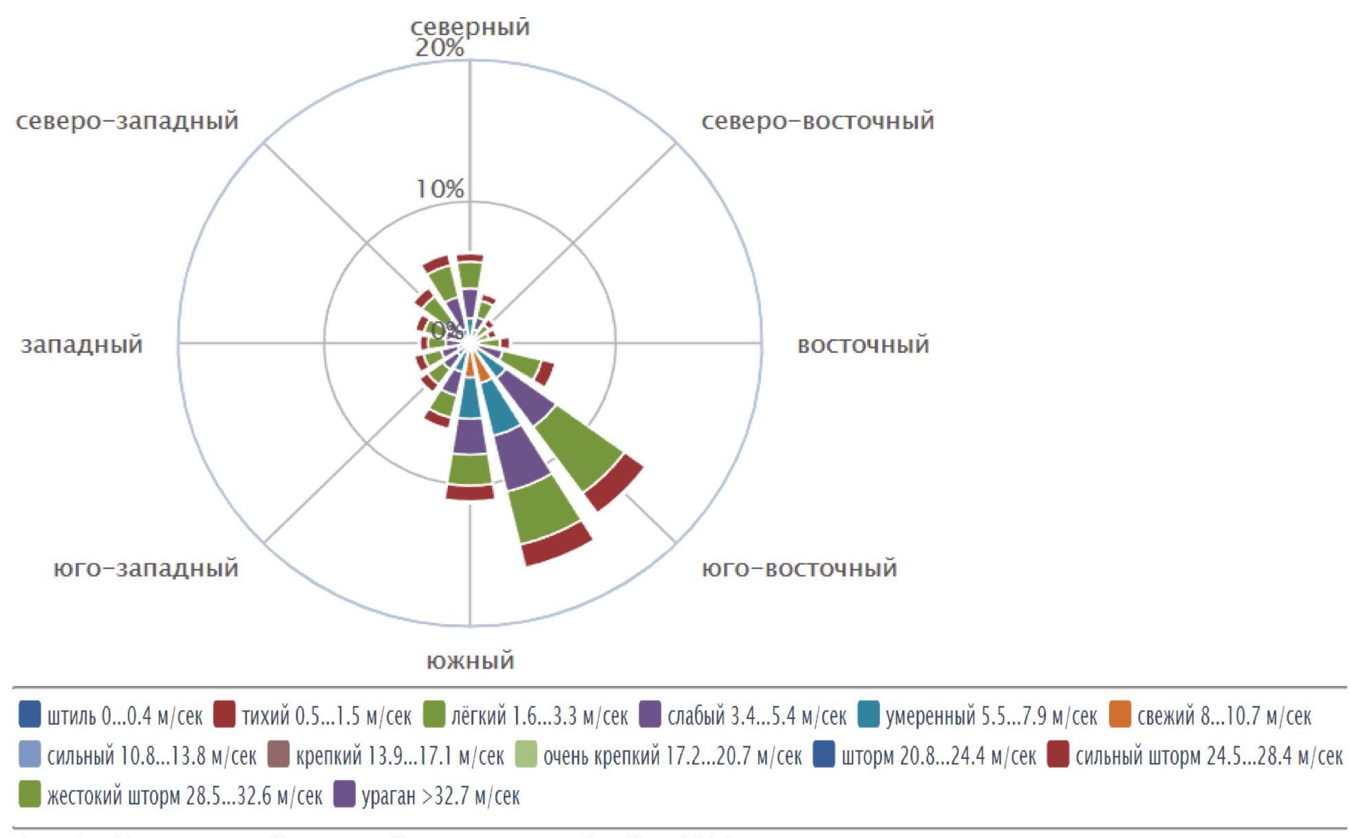 Согласно розе ветров (рис. 1) в районе Норильского промышленного комплекса в течение 2021 г. превалировали юго-юго-восточные ветра со скоростью 0,5–7,9 м/сек-в общем около 42 % [5]. В зависимости от сезона направление ветров кардинально меняется: например, в январе превалируют северо-северо-западные ветра (около 50 %). Исследования, проведенные в этом регионе в юго-восточном направлении [1, 2] позволили выявить три зоны аэрогенного воздействия Норильского промышленного комплекса на природную среду. Первая зона распространена до 80 км от промышленного центра, вторая зона – 80–140 км, третья зона – на удалении более 140 км. В первой зоне древесная растительность погибла полностью. Содержание серы в растениях превышает фоновый уровень, (в качестве которого был взят участок вблизи р. Черной в 223 км от Норильска) в 1,2–4 раза, никеля – в 1,5–470 раз, меди – в 1,3–156 раз [6]. В зоне 80–140 км появляются черты, свойственные данной биоклиматической зоне, подлесок и мохово-травянистая растительность не угнетены. В этой зоне содержание серы, никеля и меди в растениях близки к фоновым значениям.