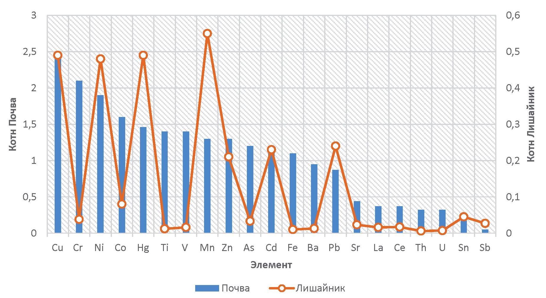 Элемент Element | Почва/Soil | Лишайник/Lichen | ||