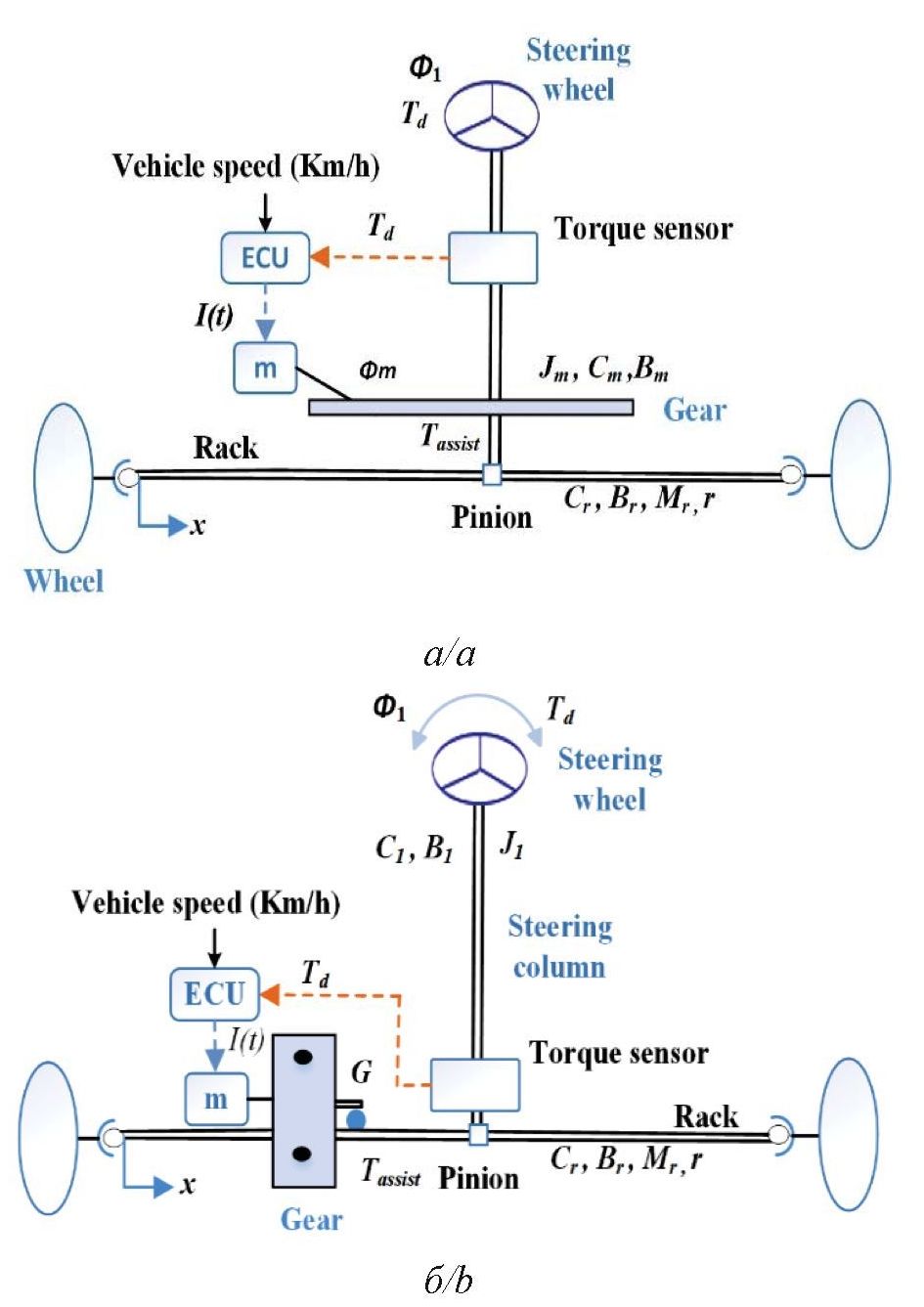 Fig. 2. Structure of EPS: a) column-type EPS; b) rack-type EPS