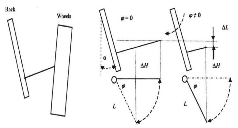 где α – угол поворота колеса относительно продольного положения корпуса автомобиля; М – масса автомобиля на одно колесо; L – длина оси поворота цапфы.
