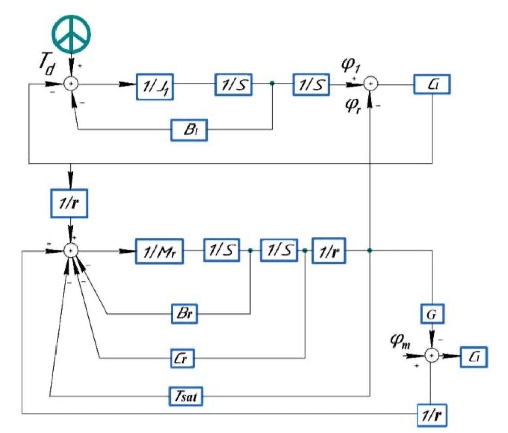 На основе уравнений (1)–(7) структурная схема механической части ЭУР представлена на рис. 5.