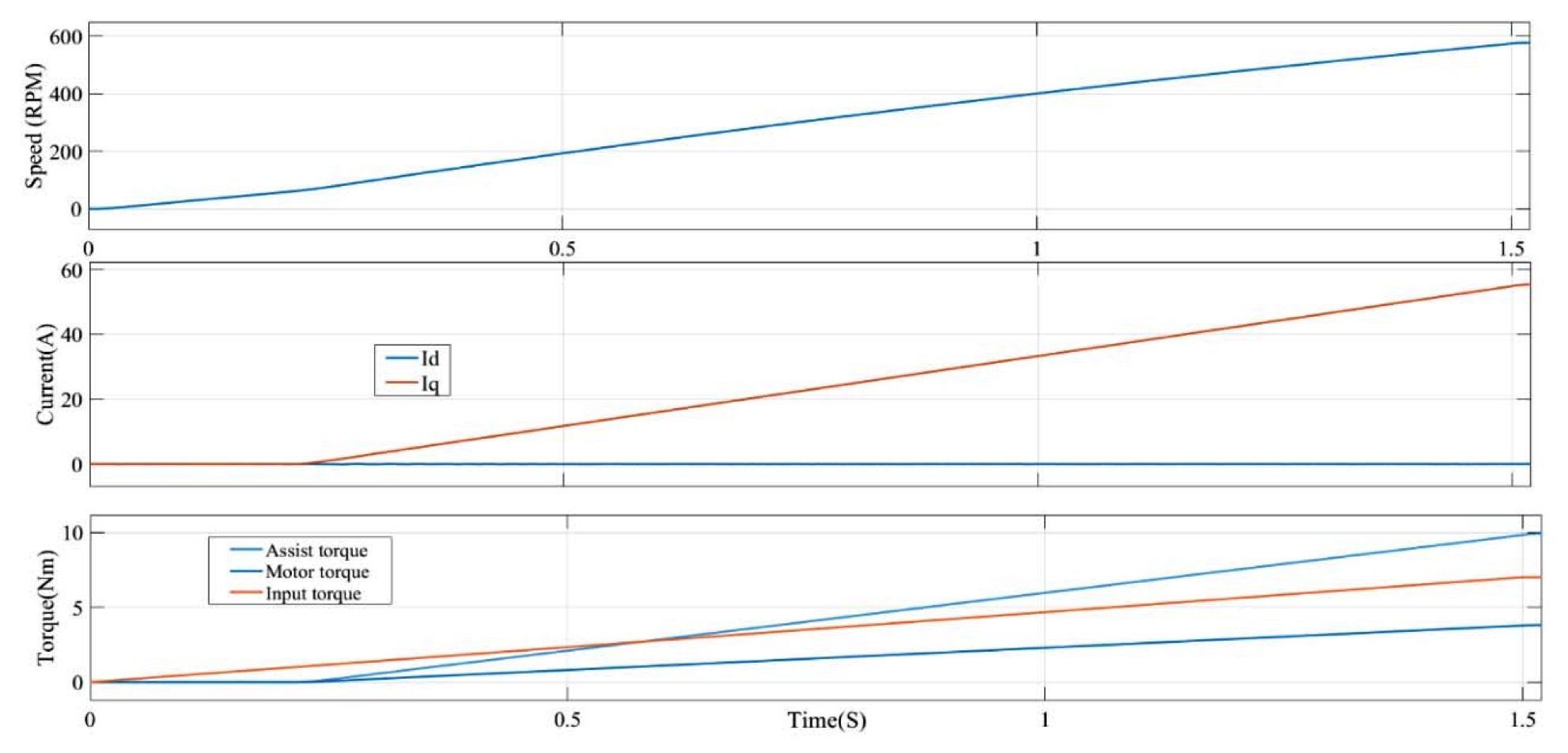 Fig. 11. Simulation results of the input driver torque, motor torque and assist torque at a vehicle speed of 40 Km/h