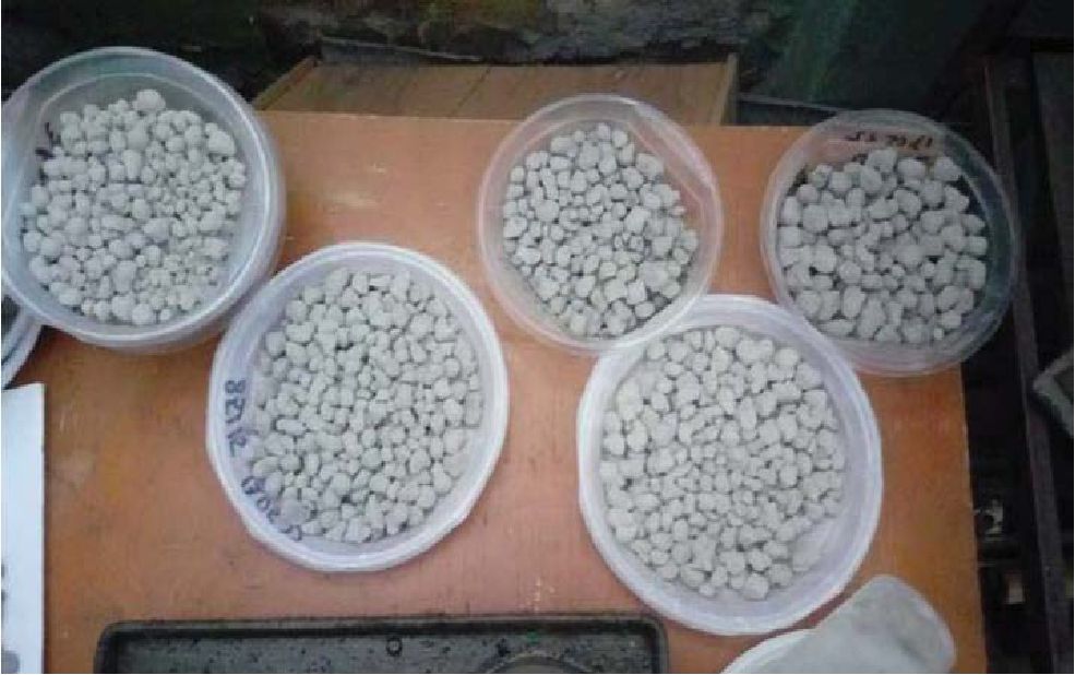 Известно об успешных результатах гранулирования золы уноса бурого и каменного угля с добавлением в качестве связующего фосфогипса, состоящего в основном из гидрата сульфата кальция, портландцемента (гидравлического вяжущего вещества с преобладанием силиката кальция) и гидратированной извести (извести, которая схватывается при гидратации) [18–21]. Однако данный гранулят превращается в прочный или средней прочности гравий, камень, керамзит при пределе прочности на сжатие от 50 до 100 МПа, который можно использовать только в качестве заполнителя в производстве бетона.