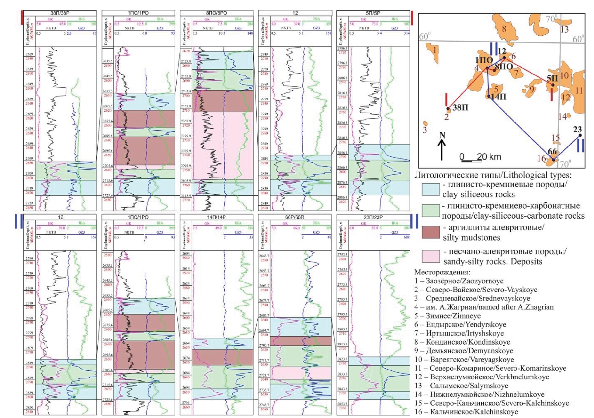Fig. 3. Correlation of the Bazhenov formation within the Uvat oil and gas bearing area