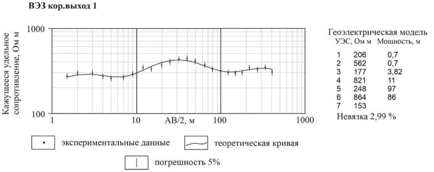 Рис. 6. Кривая ВЭЗ и геоэлектрическая модель
