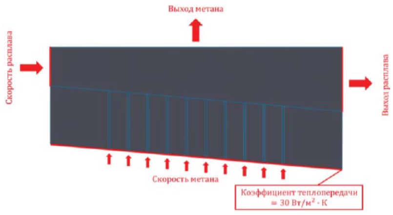 Одной из основных идей данного подхода является нагрев природного газа до температур, при которых начинается его разложение на углерод и водород (до 500 °С). Таким образом, метан, попадая в расплав, температура которого поддерживается равной 1400 °С, преобразуется в углерод-водородную смесь, восстановительные свойства которой существенно выше, чем у оксида углерода (рис. 2).