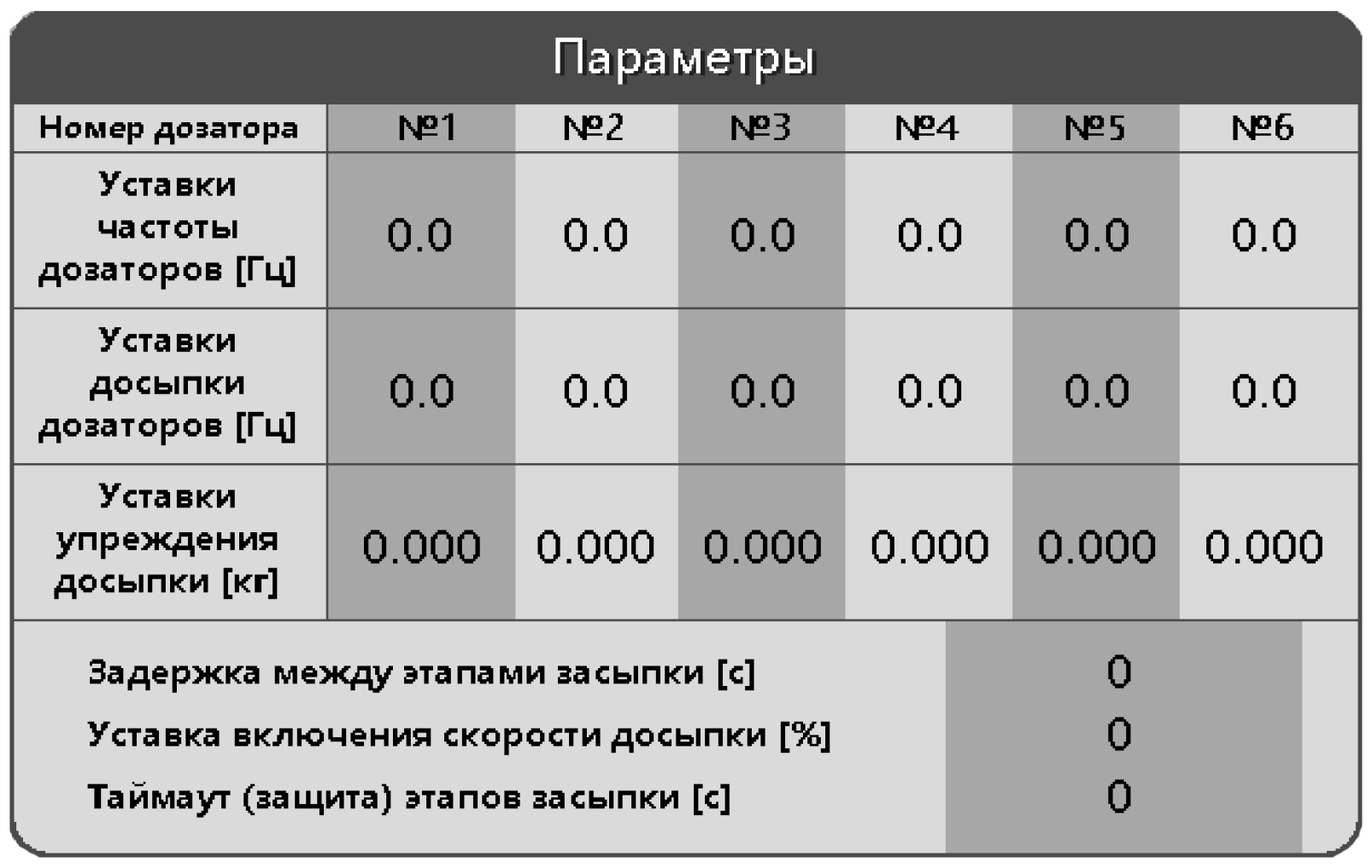 Оператор запускает и останавливает дозаторы с панели управления. При этом возможно задавать частоту вращения вала дозатора (рис. 5). Данный режим предназначен для выгрузки оставшегося в бункере материала при обслуживании оборудования.