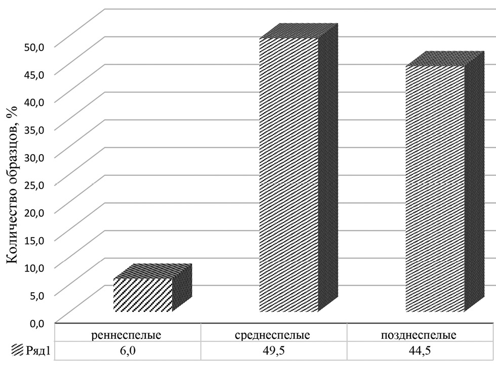 Рис. 1. Распределение образцов T. durum по группам скороспелости.