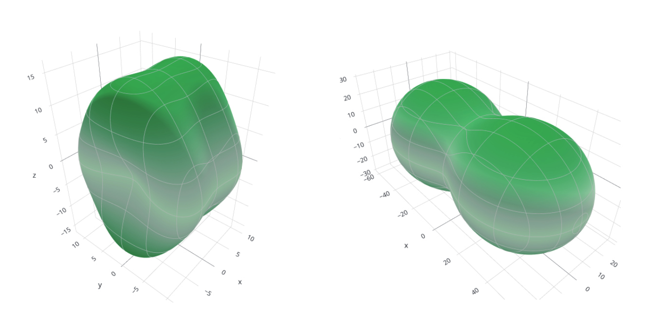Рис. 1.2. Визуализация упругих свойств рассматриваемого материала: модуль Юнга (слева) и сжимаемость (справа)