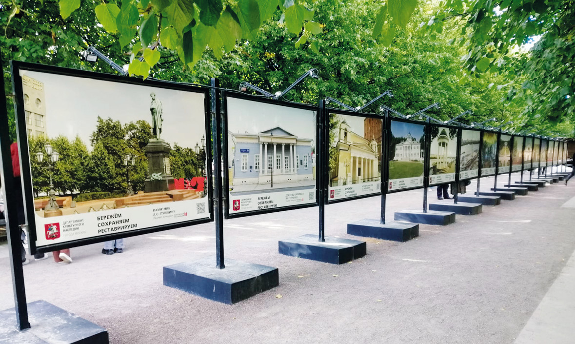 Еще один формат выставок – уличные галереи фотографий, контент для которых создает как департамент, так и сами жители. Примером может служить выставка «Лучшие объекты реставрации – новые точки притяжения столицы», открытая на Цветном бульваре осенью 2022 г. [7]. На стендах были представлены фотоснимки лучших реставрационных проектов, ставших лауреатами «Московской реставрации» – конкурса Правительства Москвы в области сохранения и популяризации объектов культурного наследия. Важно подчеркнуть, что специалисты-реставраторы не только сохраняют архитектурное наследие, но и дают ему вторую жизнь, учитывая новые потребности горожан. В результате отреставрированные объекты становятся новыми центрами притяжения для москвичей и для туристов. Мосгорнаследие видит свою задачу в том, чтобы знакомить жителей с трудами реставраторов.