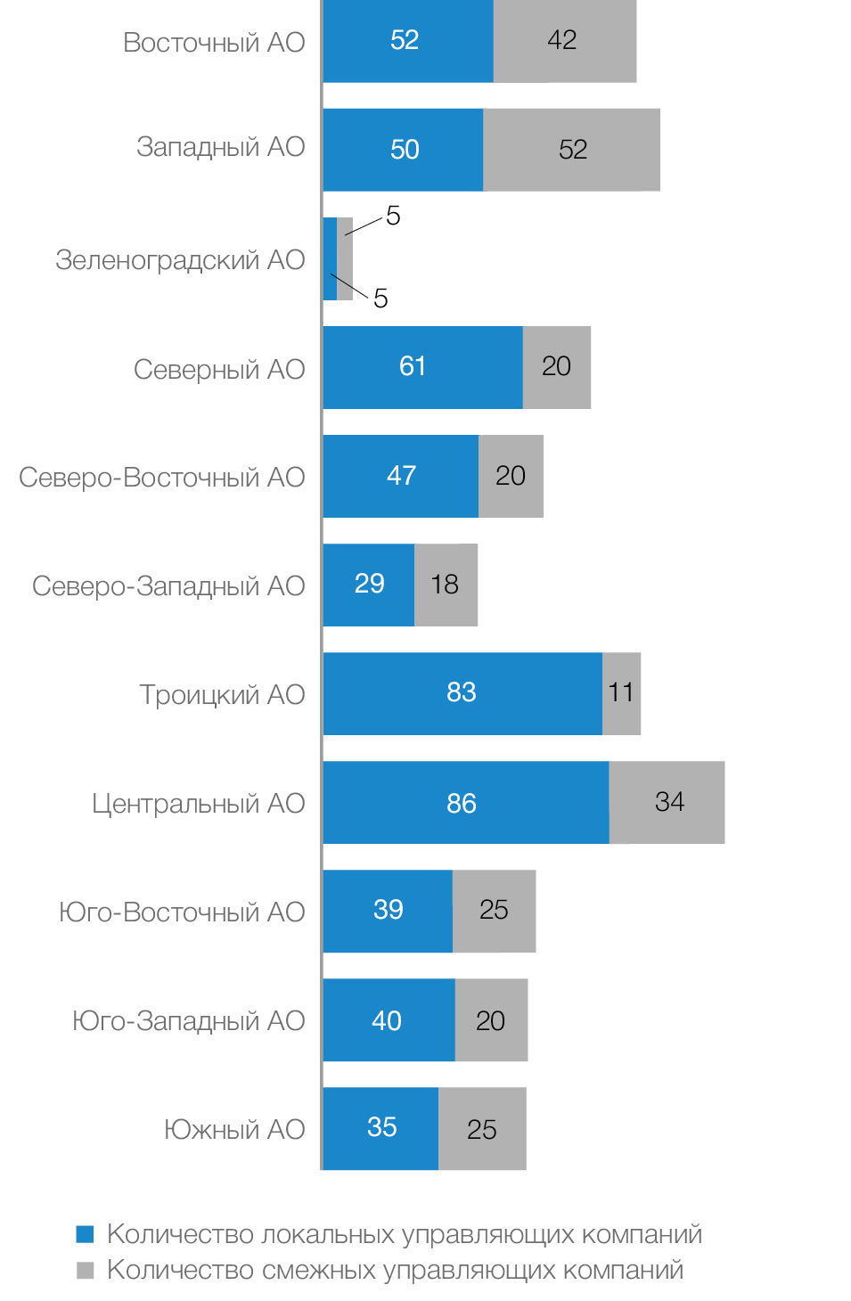 На рисунках 3 и 4 не учтены дома смежных управляющих компаний. Именно эти организации создают для административных округов эффект солидарного действия.