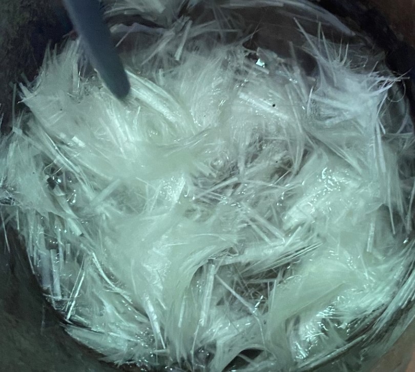 Фибру добавляли в часть воды затворения, хорошо перемешивали, чтобы волокна распределились и затем добавляли в бетонную смесь в процессе замешивания (рис. 4).