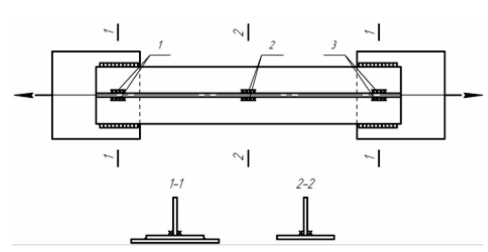 – вторая, наоборот, – с первоначальной наплавкой швов поз. 1 и 3 по концам основного стержня (в пределах фасонок) и последующим нанесением швов поз. 2.