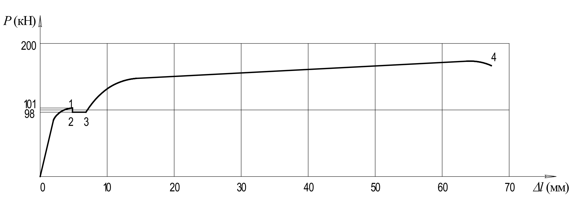 Как видно из графиков, при наплавке всех швов на стержень 1-й группы удлинения не отмечались (точка 2). При наплавке же промежуточных швов на стержень 2-й группы имели место удлинения (площадка 2–3).