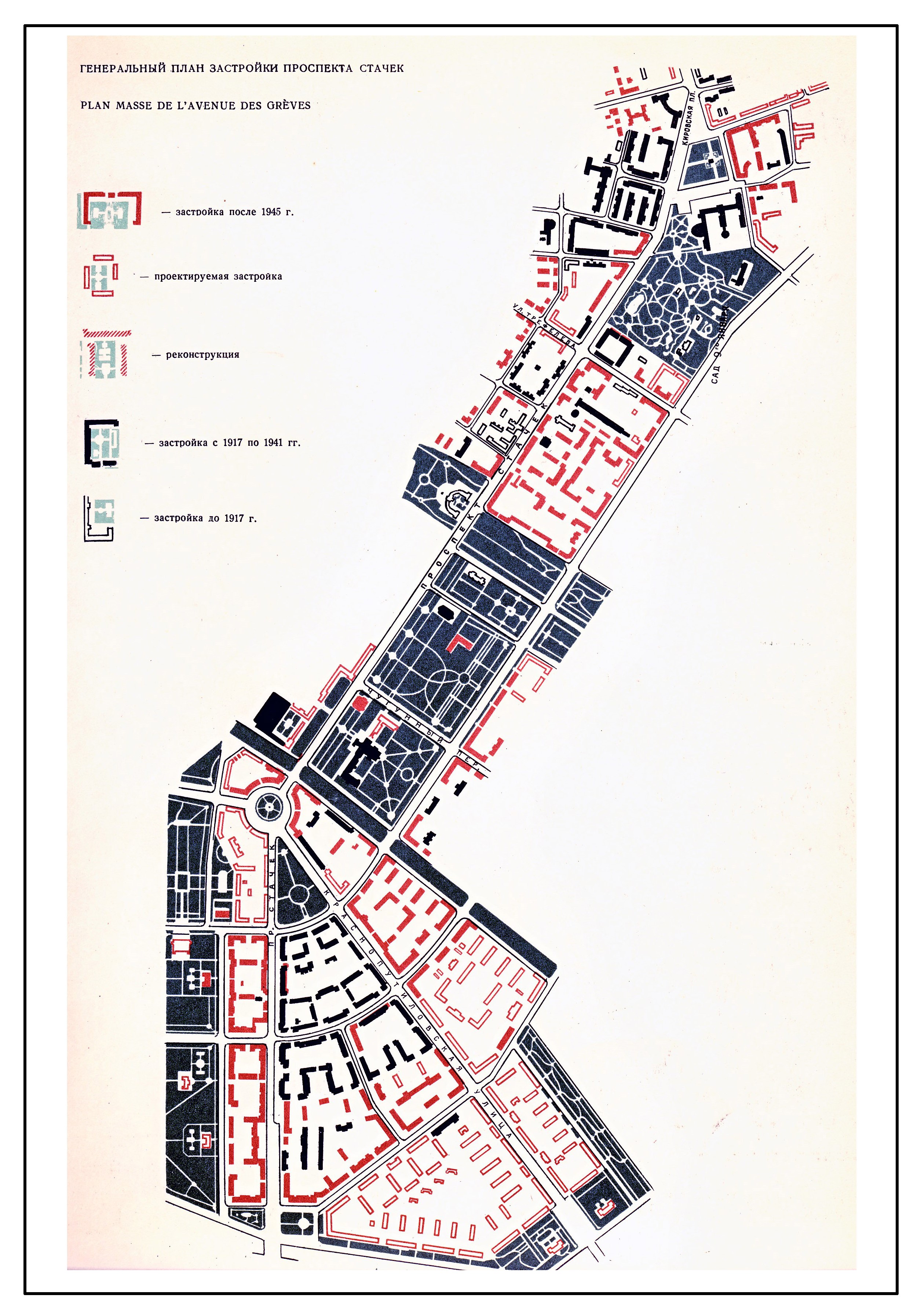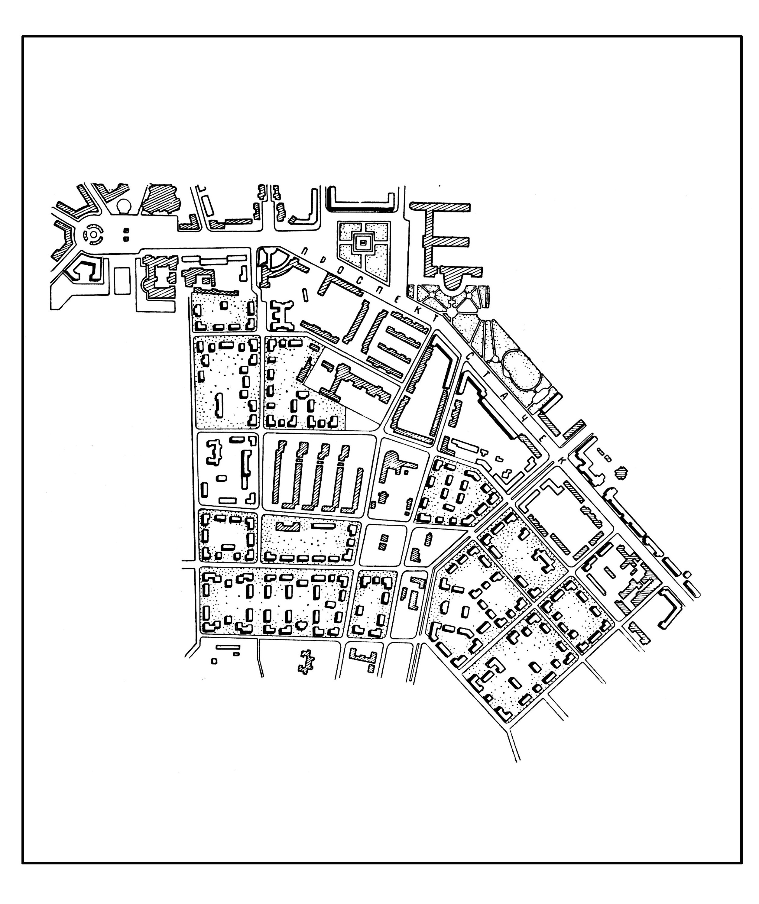 Психологический портрет и поиски жизненного и творческого пути В.И. Каменского представлены в публикации независимого исследователя З.Б. Клюквиной «В.А. Каменский. Путь в профессию». Это был нелегкий путь формирования творческой личности, поисков профессионального пути. Из этой публикации можно сделать вывод о том, что В.А. Каменский сформировался как архитектор к началу 1930-х гг. [1]. По существу, его учителем в то время был известный петербургский и ленинградский архитектор Андрей Андреевич Оль (1883−1958). Профессиональная деятельности В.А. Каменского началась в первой половине 1930-х гг. в мастерской этого зодчего, в творческом коллективе, занимавшемся проектированием и строительством в Кировском районе Ленинграда. Под руководством А.А. Оля В.А. Каменский выполнил проект комплекса зданий Гидрографического управления ВМФ на набережной Невы, проект санатория «Пикет» в Кисловодске. В конце 1930-х он участвовал в разработке генерального плана застройки проспекта Стачек с завершением в районе Краснопутиловской улицы, реализация которого была завершена в послевоенные годы (рис. 1). Поэтому данный период можно считать первым этапом его архитектурно-градостроительной деятельности.