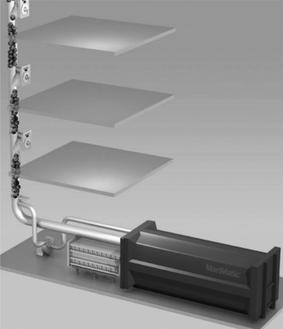 Рис. 4. Схема системы МТ-буферизации отходов гравитационных мусоропроводов в высотных зданиях